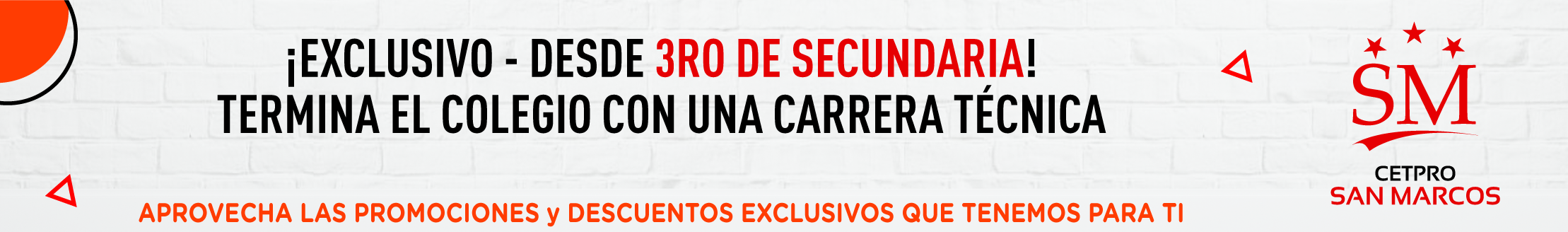 Su información podrá ser utilizada para el envío de publicidad sobre la diversa oferta educativa que el CETPRO Privado San Marcos ofrece en sus distintos programas. Para tal efecto, la información le será enviada principalmente a través de su correo electrónico del CETPRO Privado San Marcos o del correo personal que usted hubiera proporcionado o a su WhatsApp.